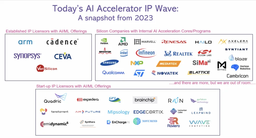 This second image captures a snapshot of just some of the competing NPU accelerator offerings – as IP and embedded in silicon - from just two years ago, when the wave of NPUs was at its peak.